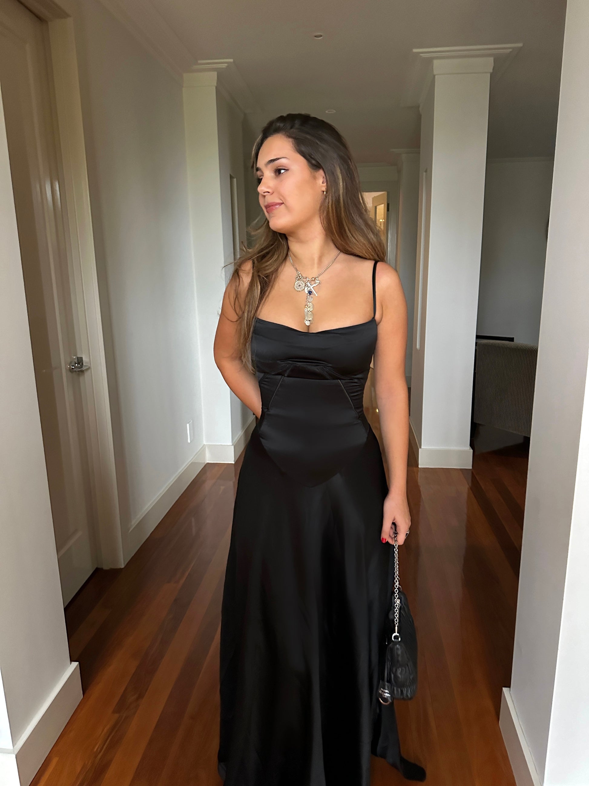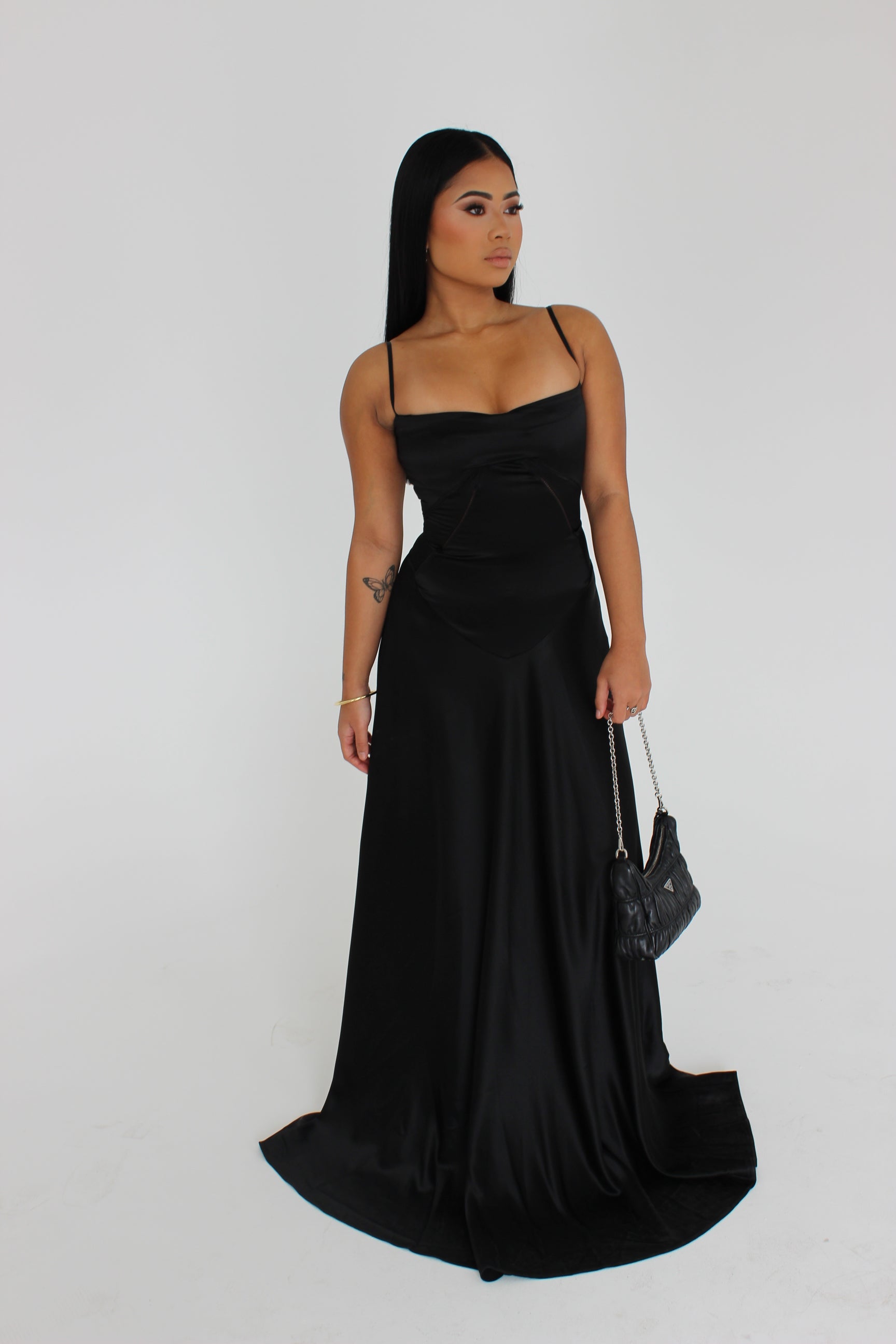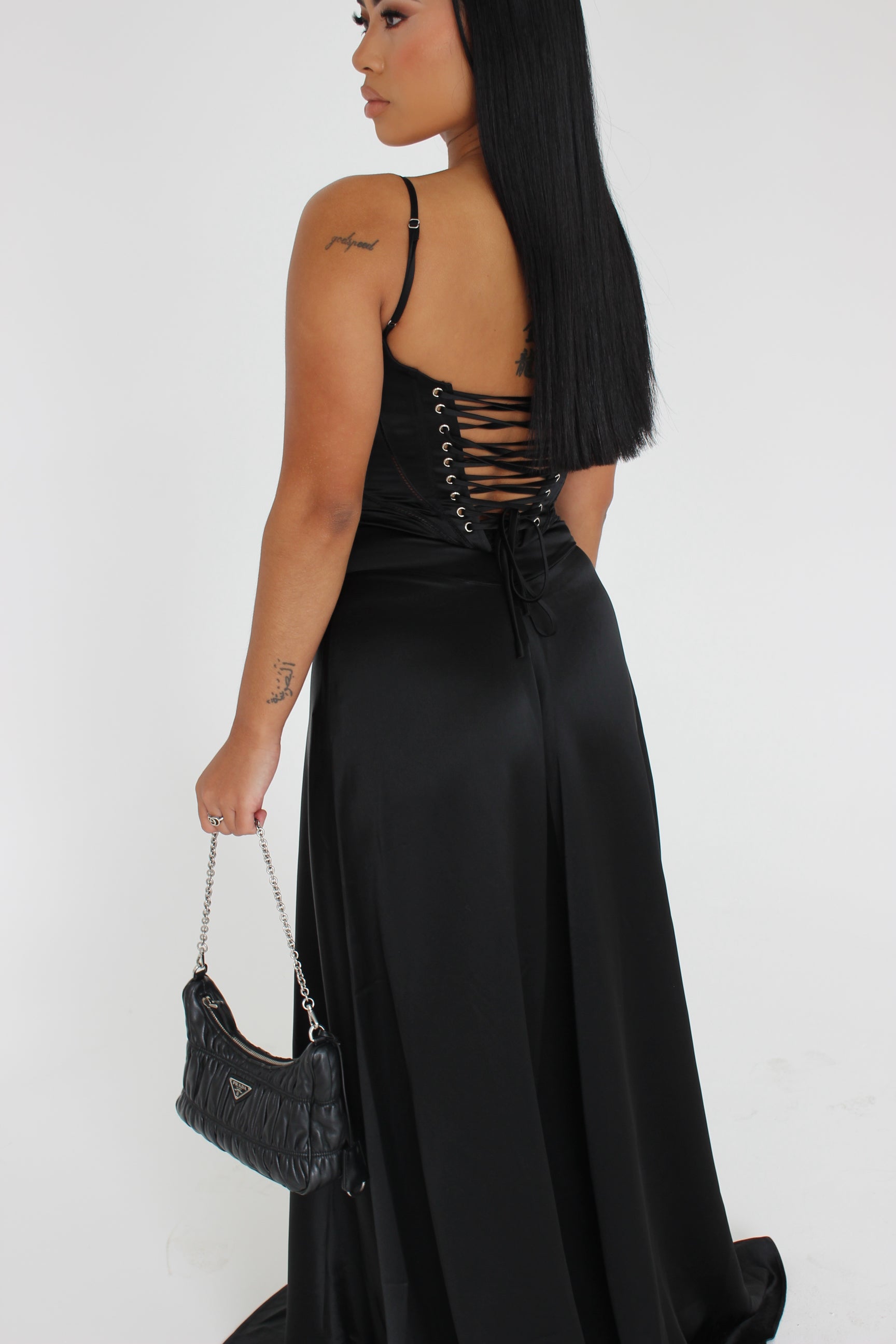 Expertly crafted by House Of CB, the Anabella Gown is a stunning black satin corset gown. With a sleek and elegant design, this gown exudes sophistication and grace. Perfect for any formal event, this gown is sure to make a statement and turn heads.